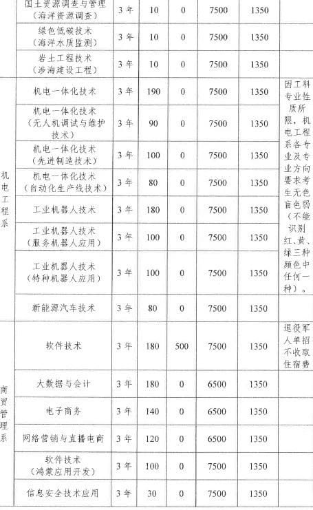 4.学院退役军人单招的录取原则为:第一专业志愿专业清;剩余计划分数优先,遵循志愿。①对已经投档的考生,按考生第一专业志愿从高分到低分排序,在专业招生计划内录取;②未被第一专业志愿录取的考生,成绩从高分到低分排序,从第二专业志愿开始按顺序及计划依次分配专业,若第二专业志愿计划已录满,则考虑第三专业志愿,仍不能满足的则考虑第四专业志愿,依此类推。如果考生所填报的10个专业志愿都已录满则进行调剂专业录取或退档。